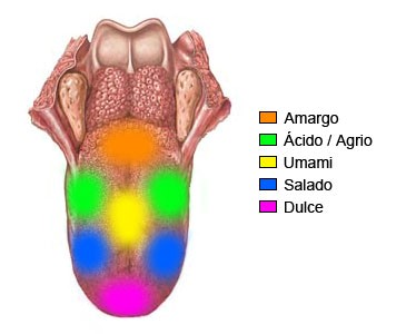 Se había agregado a la lista de sabores tradicionales amargo, ácido, salado y dulce, el sabor umami cuyos receptores preferentemente se encuentran en el centro de la lengua.